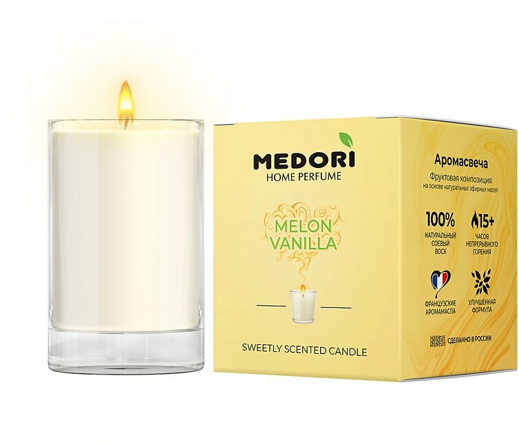 Мы выбрали 10 лучших цен на Свеча ароматическая для дома Medori Melon & Vanilla парфюмированная, декоративная с запахом в стеклянном стакане, из соевого воска для украшения интерьера. Перед тем как купить Свеча ароматическая для дома Medori Melon & Vanilla парфюмированная, декоративная с запахом в стеклянном стакане, из соевого воска для украшения интерьера посмотрите найденные предложения из Яндекс Маркета и других сайтов на основе XML фидов.