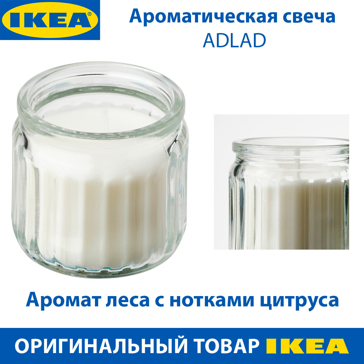 10 цен на Ароматическая свеча IKEA - ADLAD (адлад), запах леса с нотками цитруса, горение 12 ч, 1 шт