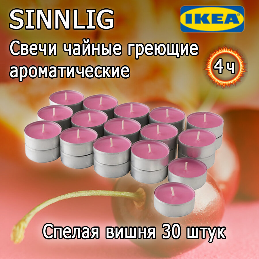 Ароматические свечи Синлиг от IKEA, греющие чайные свечки 30 штук, аромат вишни, высота 1,7 см, диаметр 3,8см горение 4 часа информация: