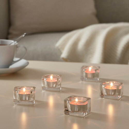 10 цен на Ароматические свечи Синлиг от IKEA, греющие чайные свечки 30 штук, аромат вишни, высота 1,7 см, диаметр 3,8см горение 4 часа