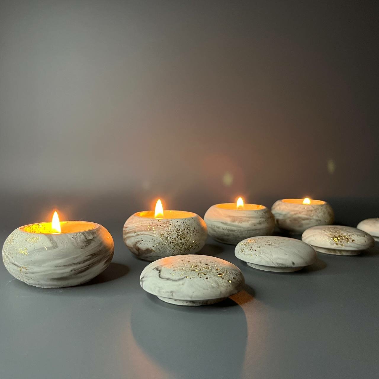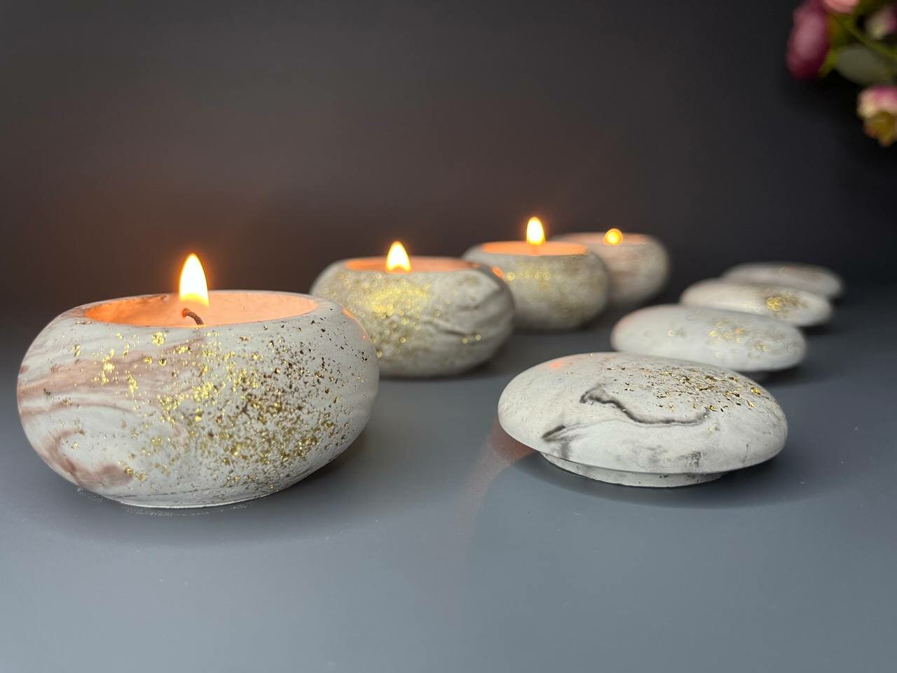 Отзывы на Свечи ароматические из Соевого воска"Камень" Набор из 4-х свечей Серо коричнево белые с золотым опылением