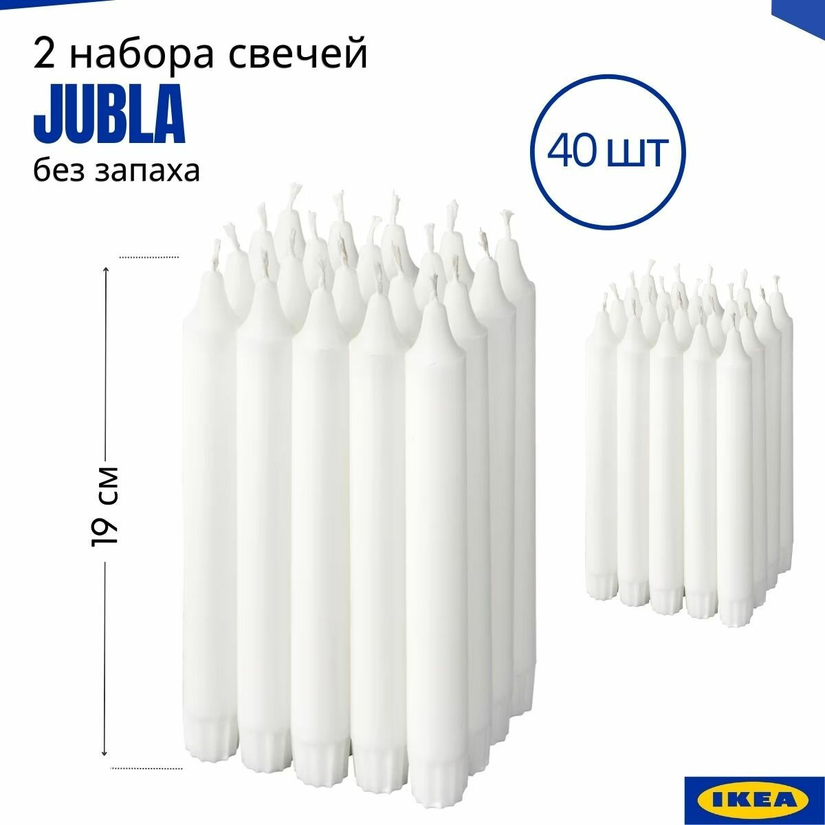 Набор свечей IKEA Jubla, 40 шт, без отдушки, 19x2,2 см. Свечи белые икеа Джубл информация: