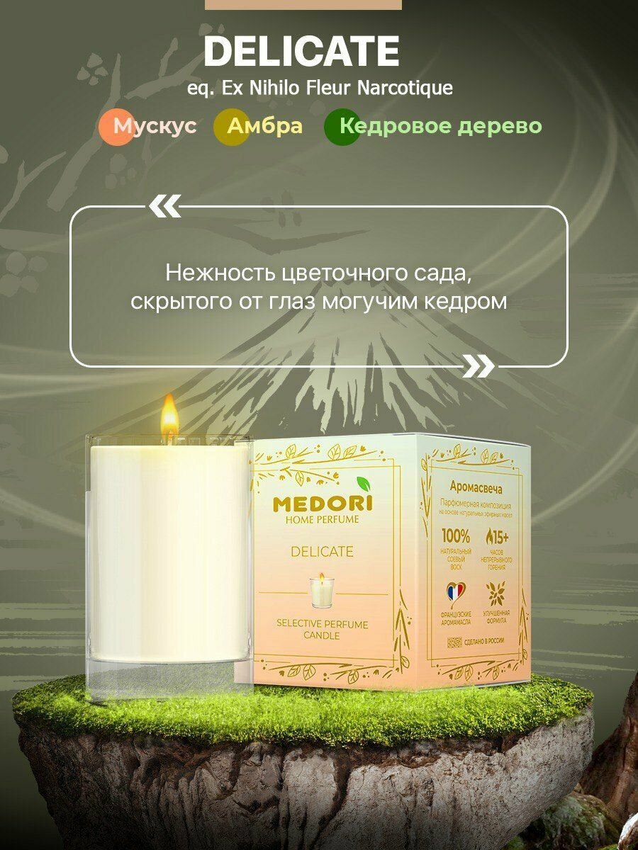 10 цен на Свеча ароматическая для дома Medori DELICATE парфюмированная, декоративная с запахом в стеклянном стакане, из соевого воска для украшения интерьера