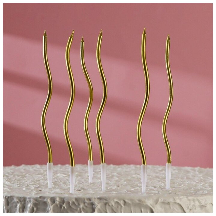 Свечи для торта парафиновые Страна Карнавалия, Серпантин, золотой, 11 см, 6 шт
