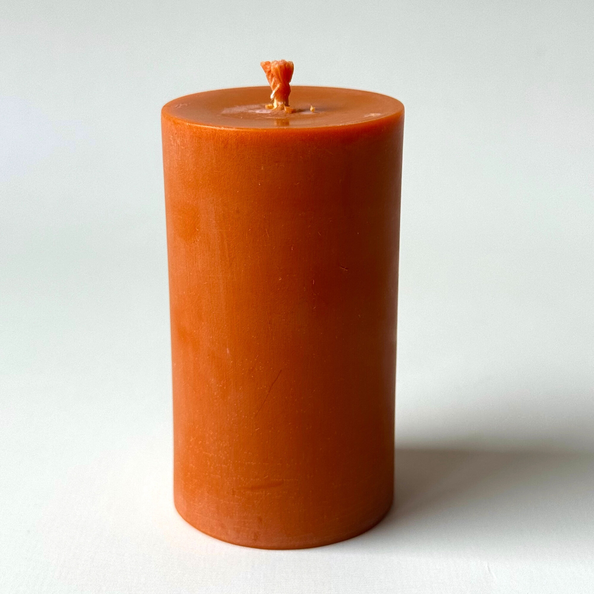 Свеча из воска ручной работы "Столбик" в оранжевом цвете информация: