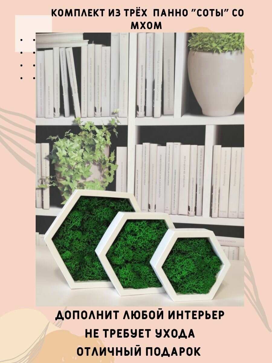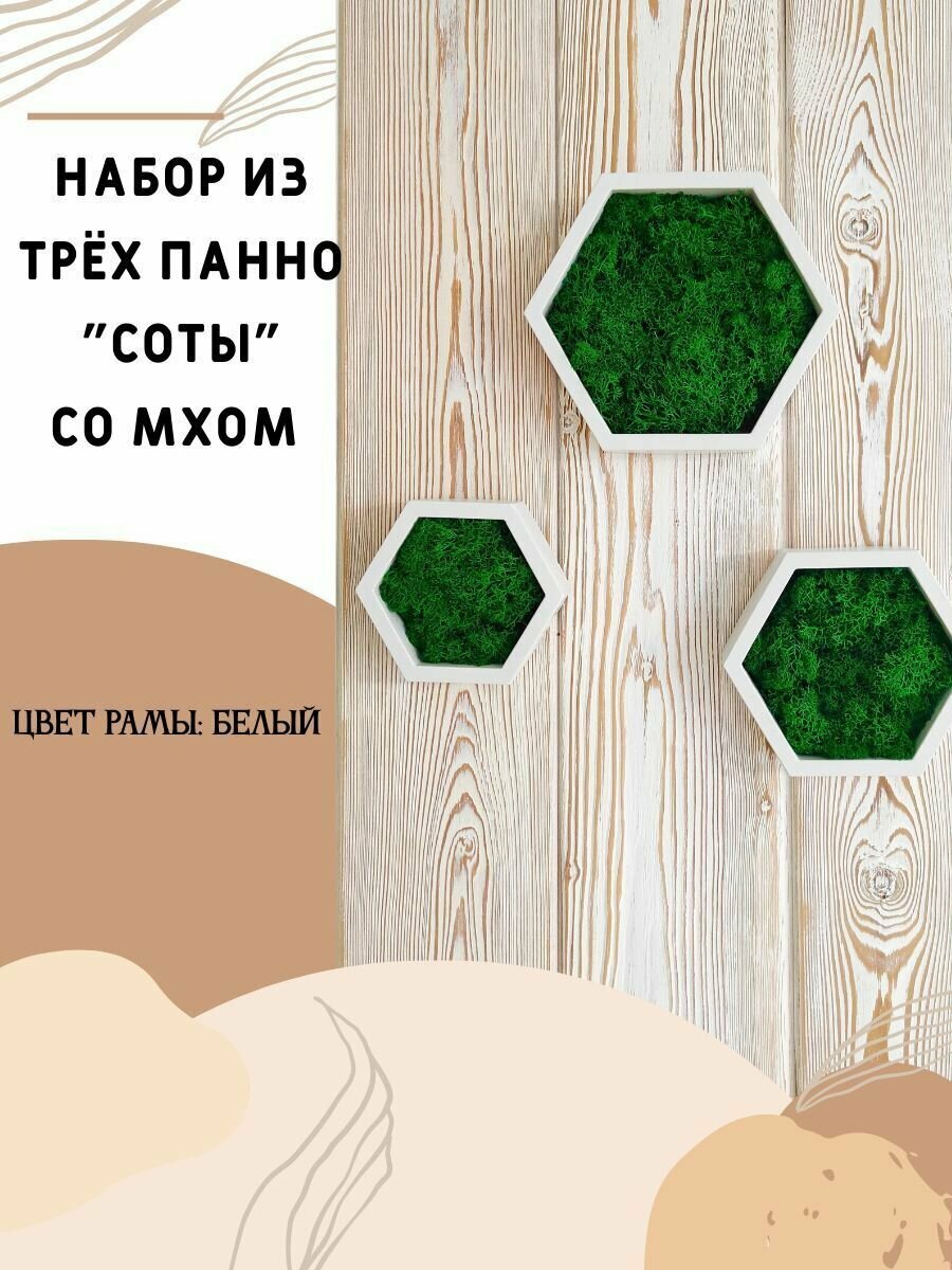 Набор панно 3 шт. из стабилизированного мха "Соты" / Живая картина из мха / размер 17 см., 14 см., 11 см. информация:
