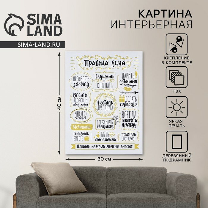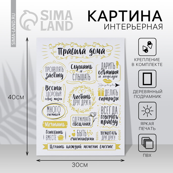 Мы выбрали 10 лучших цен на Картина «Правила дома», 30 х 40 см. Перед тем как купить Картина «Правила дома», 30 х 40 см посмотрите найденные предложения из Яндекс Маркета и других сайтов на основе XML фидов.