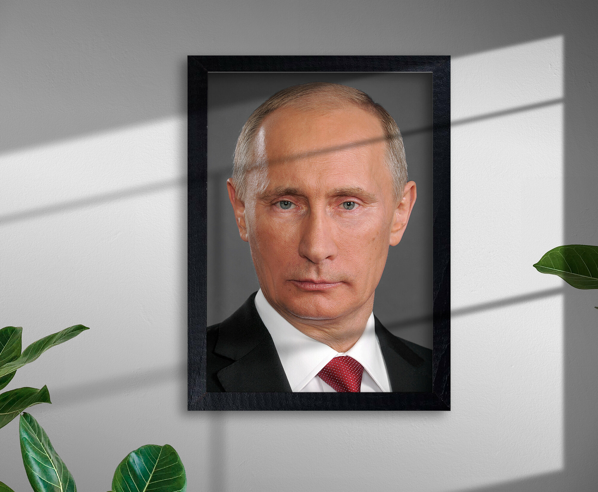 Портрет Путина с рамой / Формат А4 (21х30 см) / Постер для интерьера / Черная рамка с черной рамкой информация: