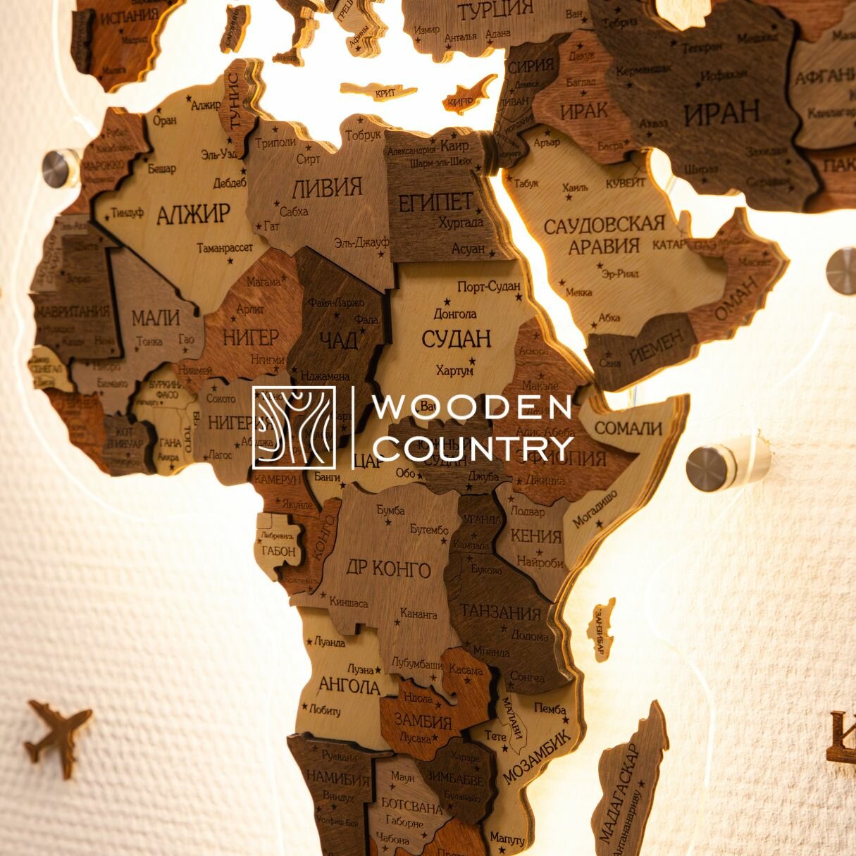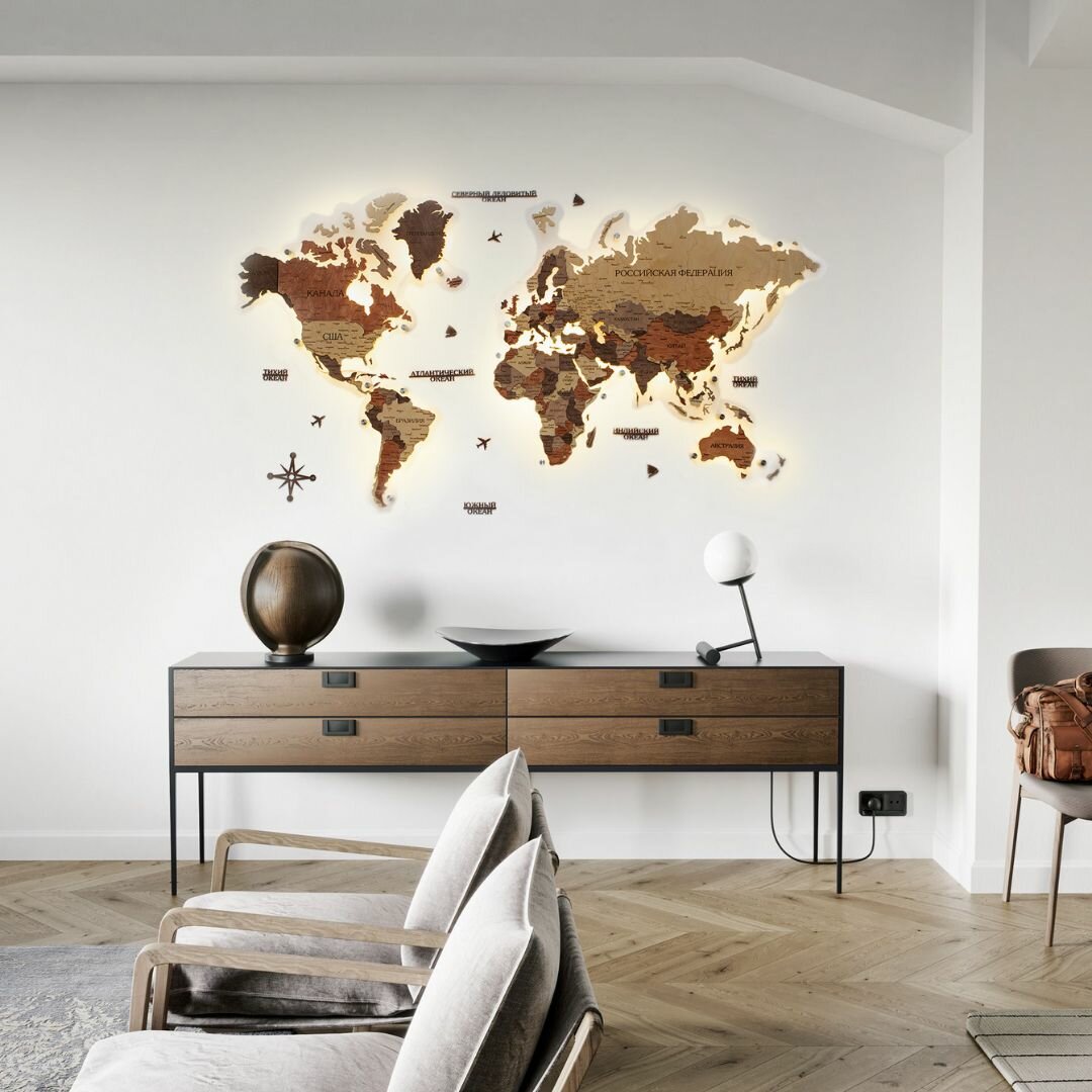 10 цен на Карта мира из дерева с подсветкой на подложке из оргстекла