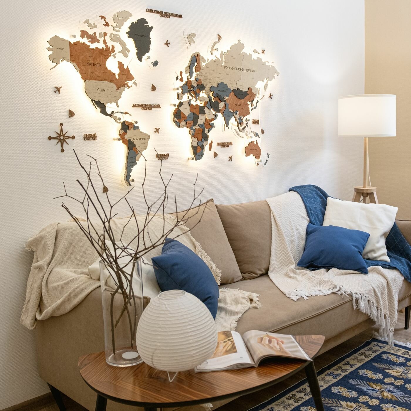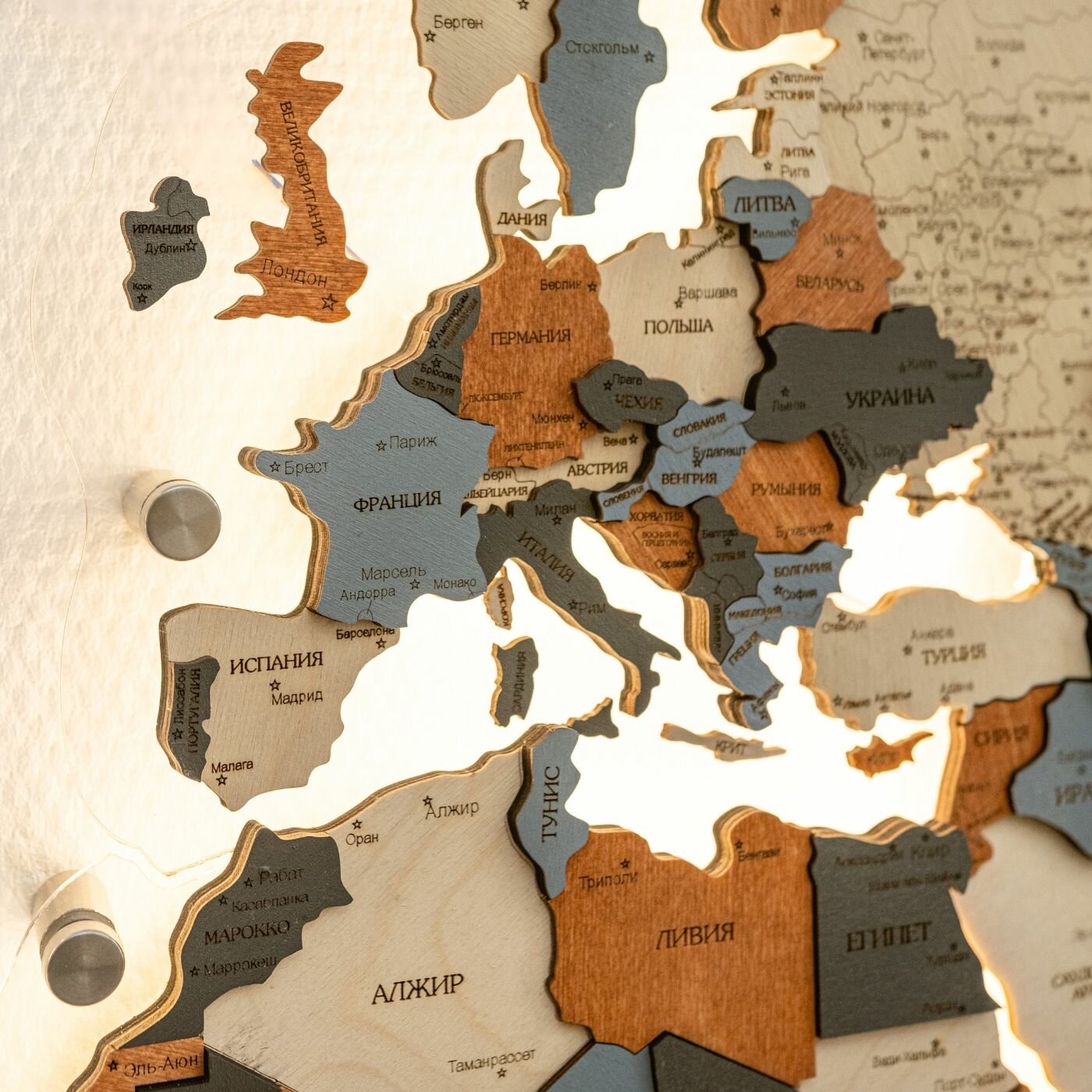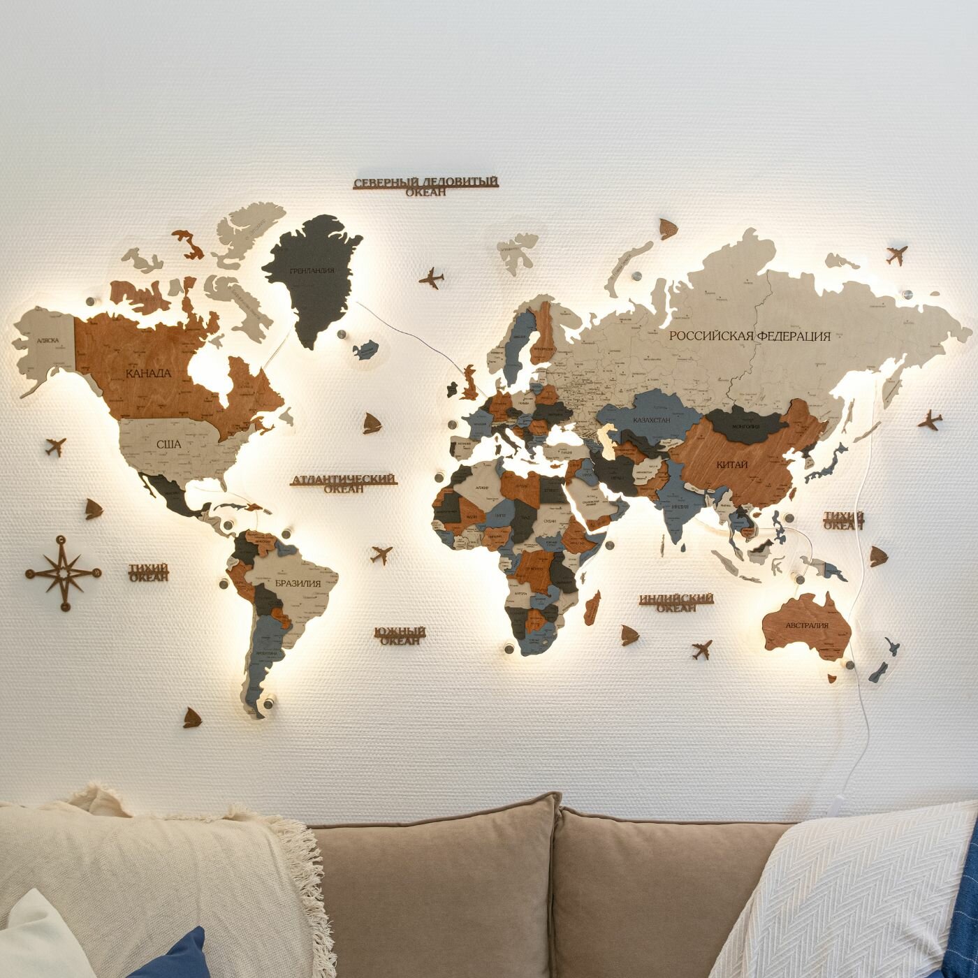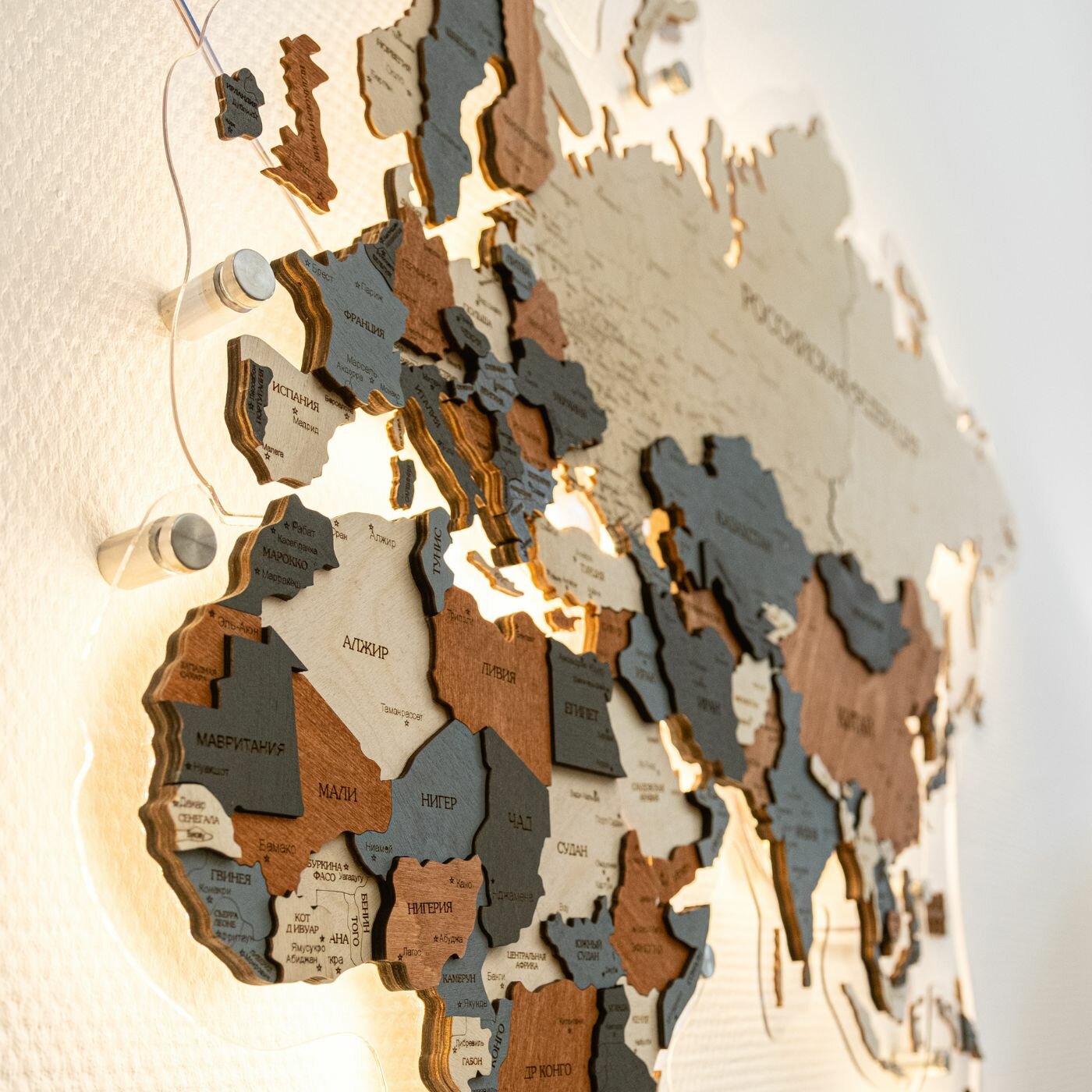 10 цен на Карта мира из дерева настенная с подсветкой 160x100 см