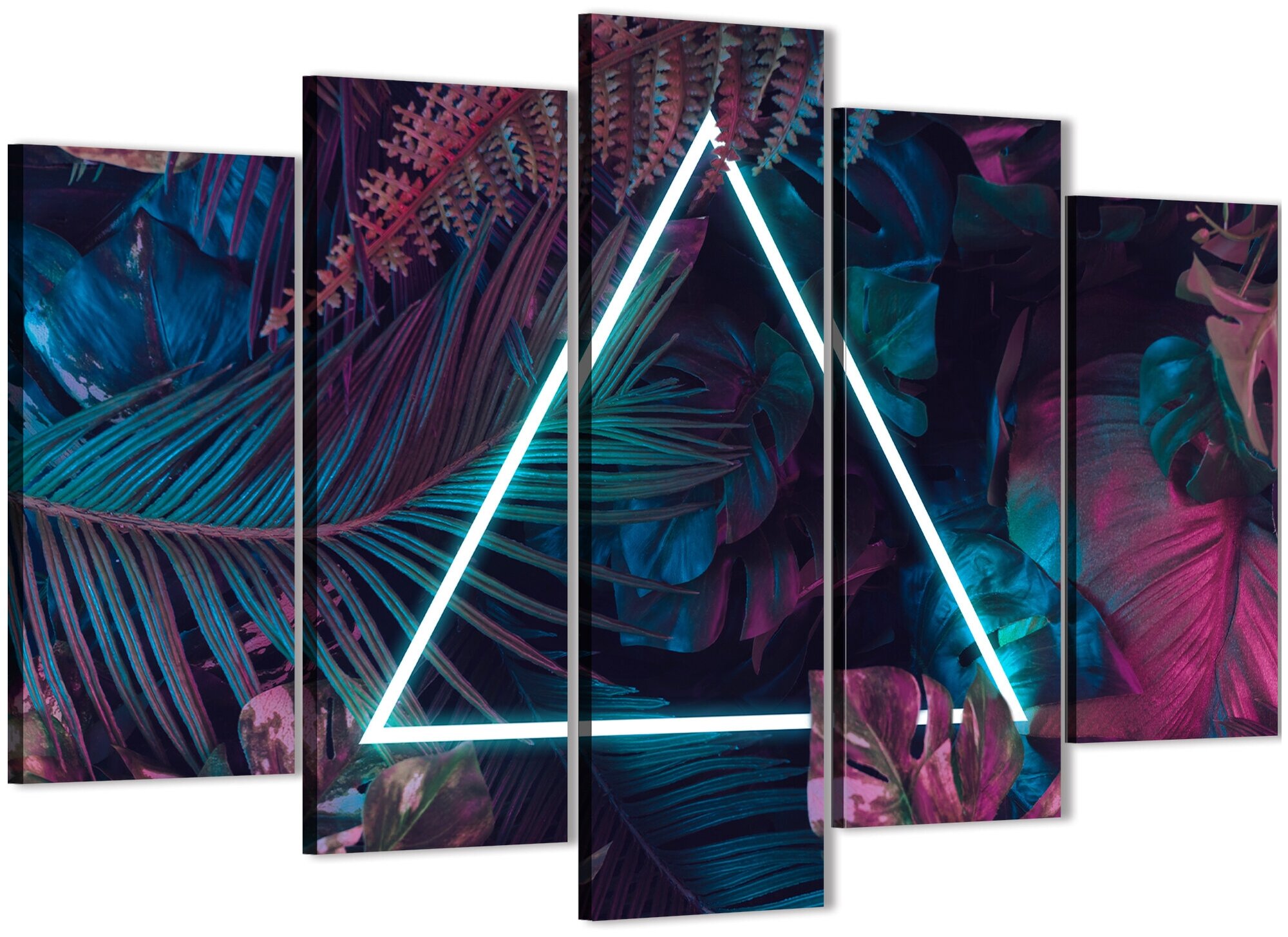 10 цен на Модульная картина для интерьера на натуральном холсте на стену "Неон абстракция" 80х140см md0108