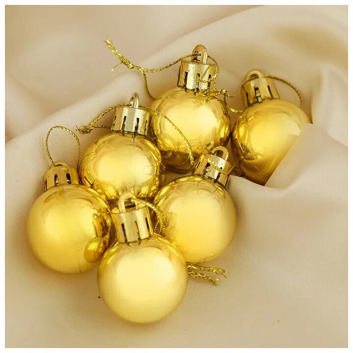 Ёлочные игрушки, шары новогодние , пластик, набор d-6 см, 6 шт "Глянец" золото 337 ₽