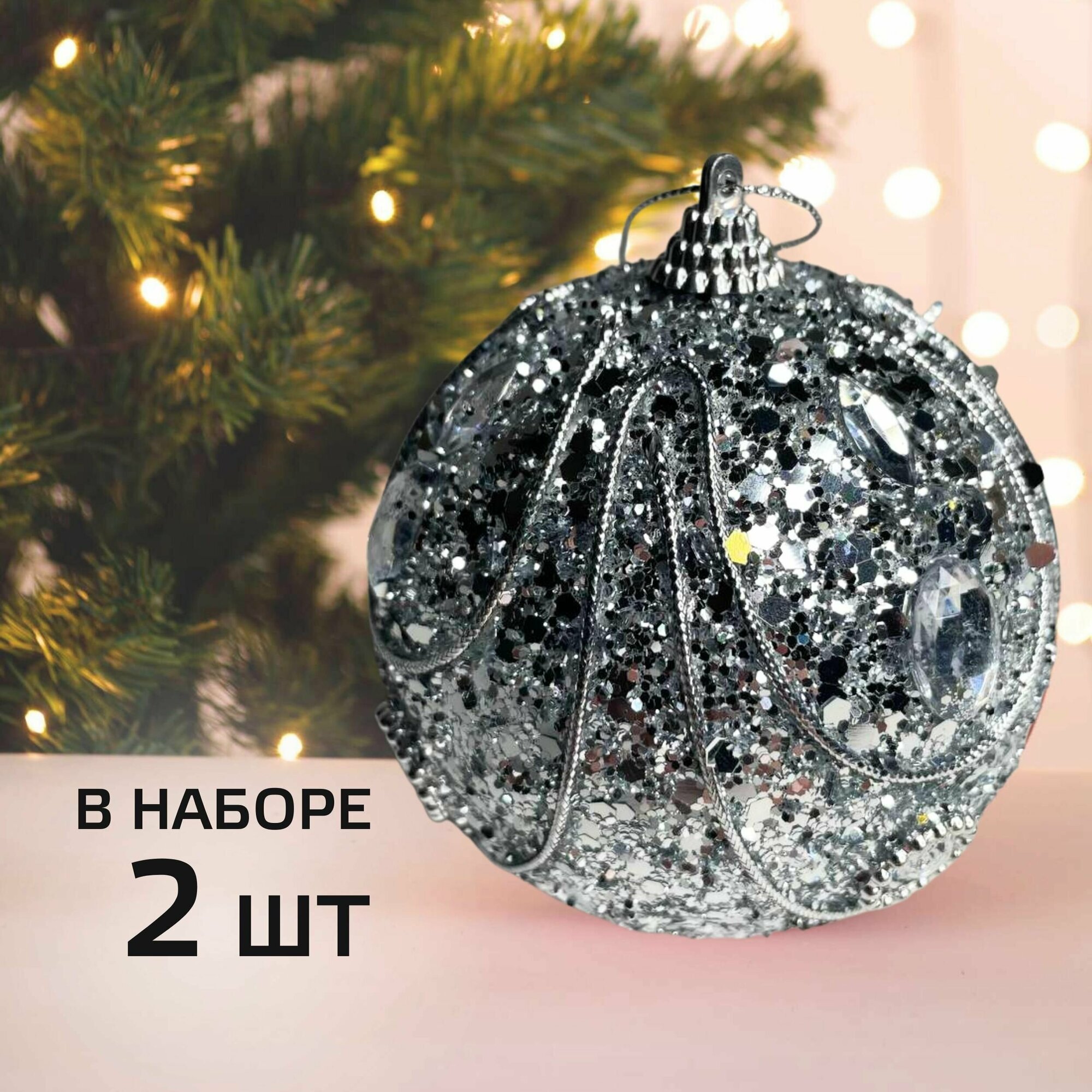 Отзывы на Новогодние шары на елку набор из 2 шт Серебристые с узором Диаметр шара 10 см Елочные игрушки Украшения на елку