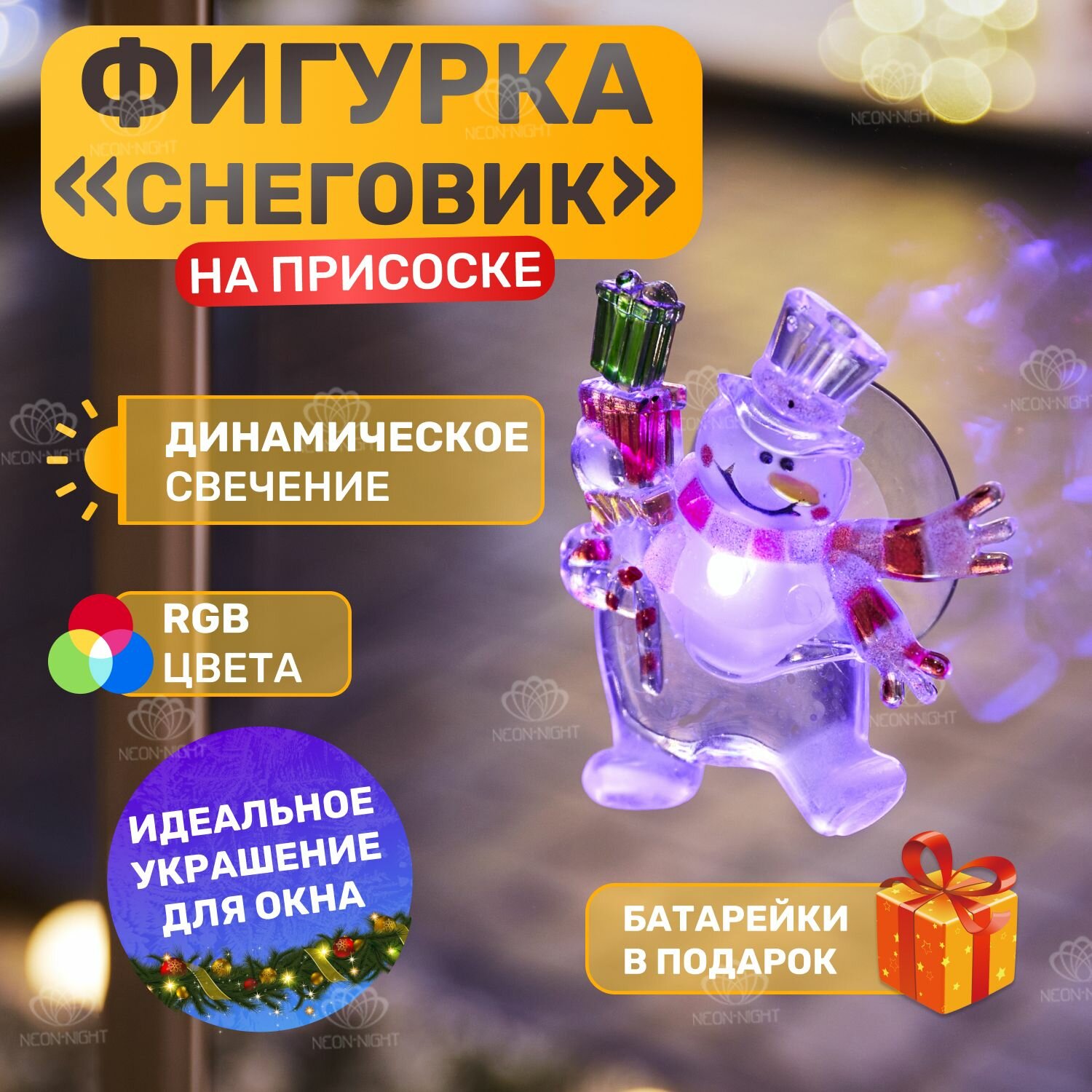 Фигурка светодиодная Neon-Night "Снеговик с подарком" RGB на присоске 501-022