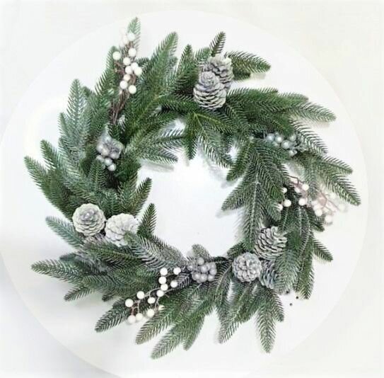 Отзывы на Венок 56 см Рождественский Новогодний Хвойный Еловый с инеем и натуральными шишками из литой ветки 100% Модель №001
