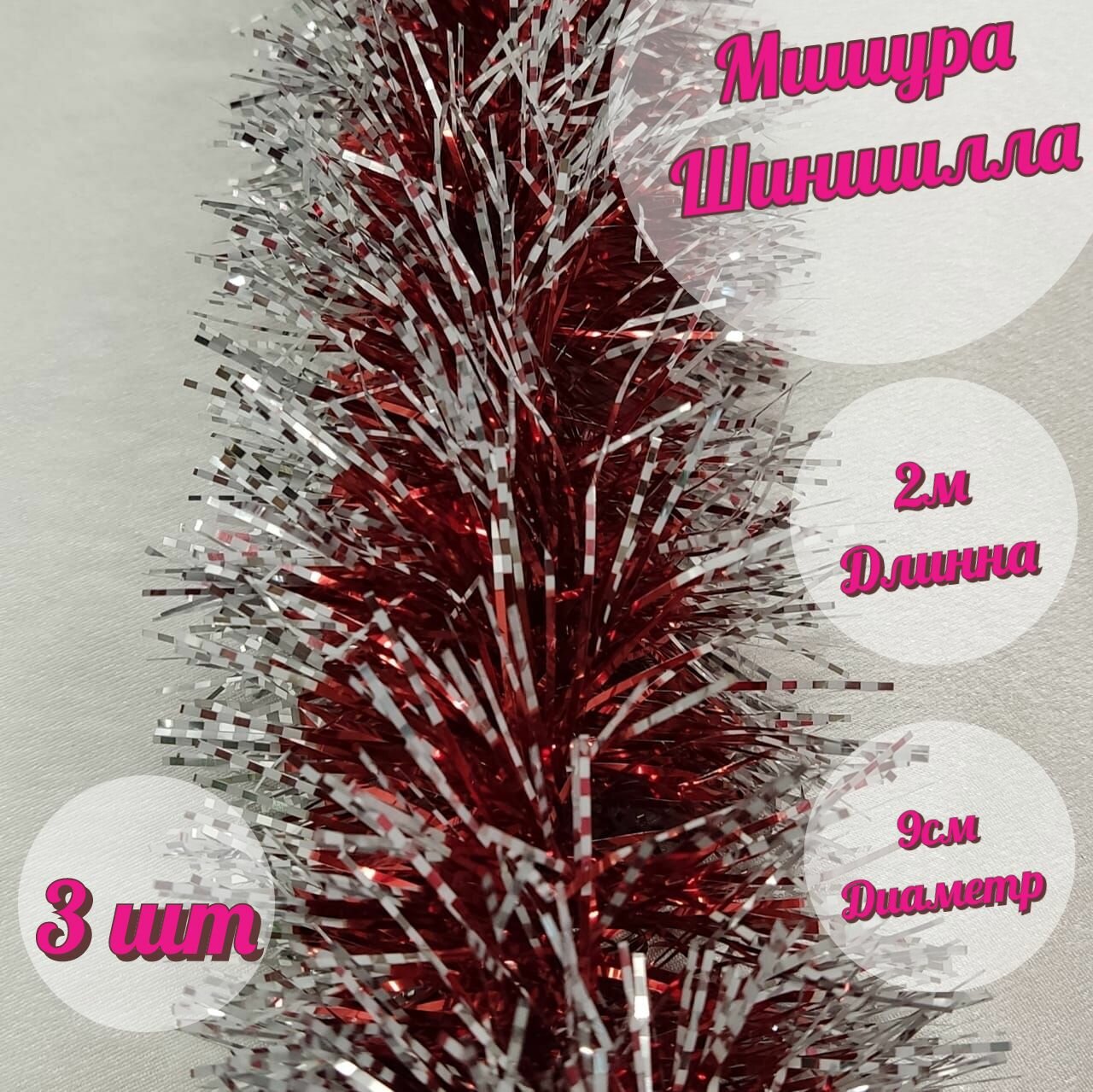 Мишура новогодняя на елку, для новогоднего декора, ёлочное украшение Mixtopkits / d 90 мм, длина 2 м, 3 шт информация: