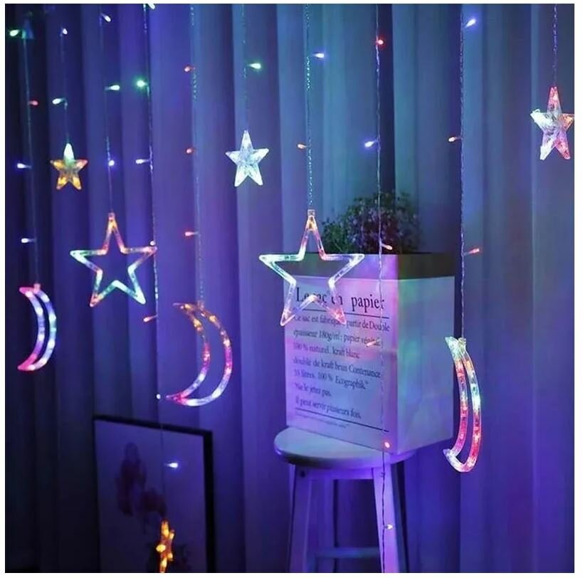 Гирлянда Новогоднее украшение занавес штора светодиодная Звезды и Луна 250×80 цвет разноцветный информация: