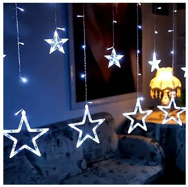 Отзывы на Новогодние украшения светодиодная гирлянда занавес, штора звезды, размер 250х100, белый свет