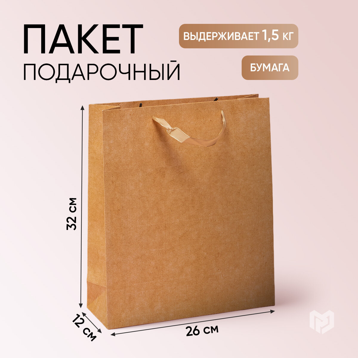 Пакет подарочный ламинированный «Крафтовый», 26 х 30 х 12 см информация: