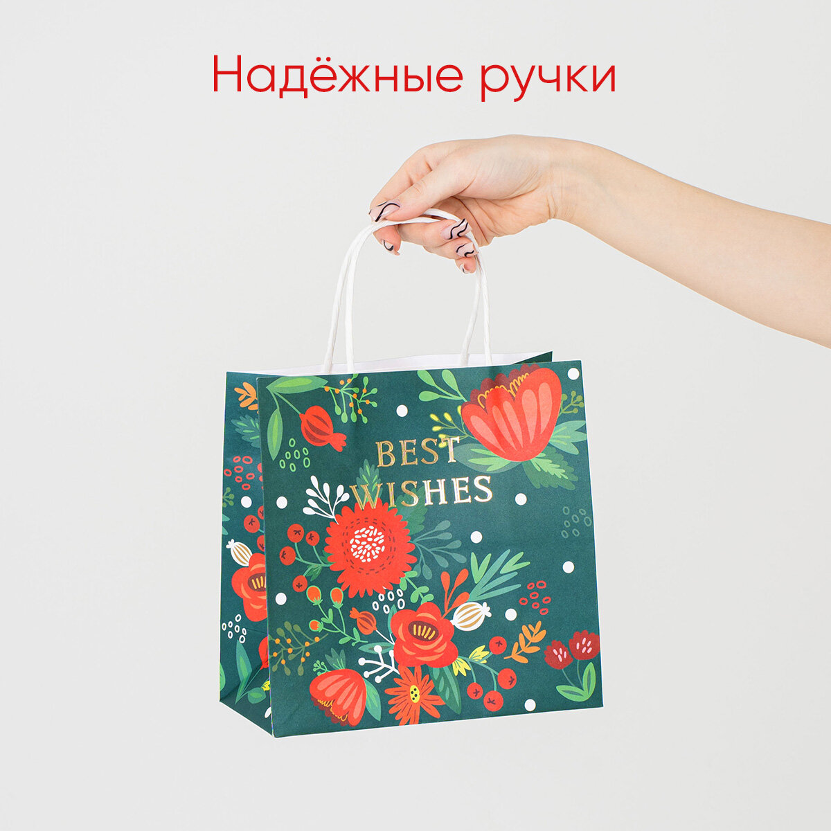 Пакет подарочный крафтовый «Best wishes», 22 × 22 × 11 см информация: