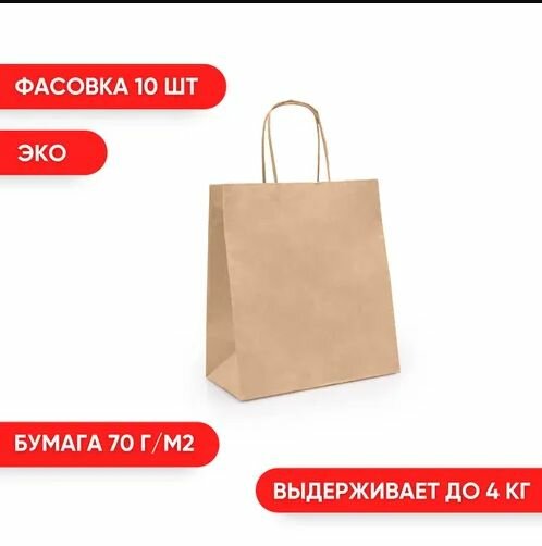 10 цен на Крафт пакет бумажный с кручеными ручками, 22*24 см (глубина 13 см), в комплекте 50 штук.
