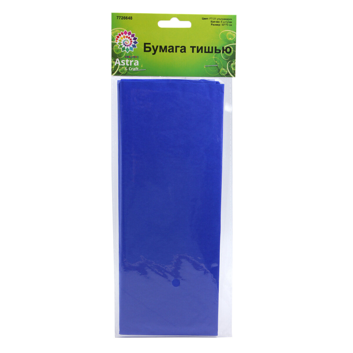Бумага Astra Craft тишью тонкая для упаковки подарков цветов и творчества 50х70см 5 шт FT-31 ультрамарин информация: