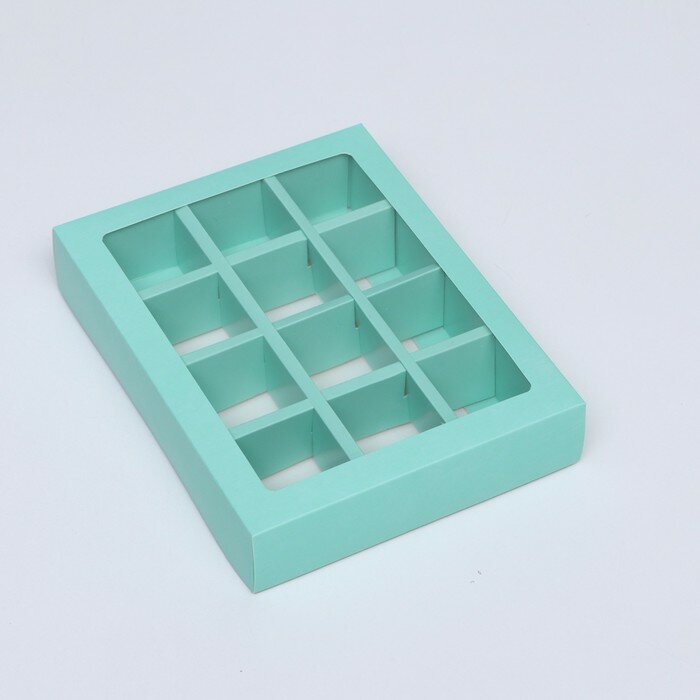 Коробка для 12 конфет, мята, 19 х 15 х 3,5 см. Кондитерская упаковка информация: