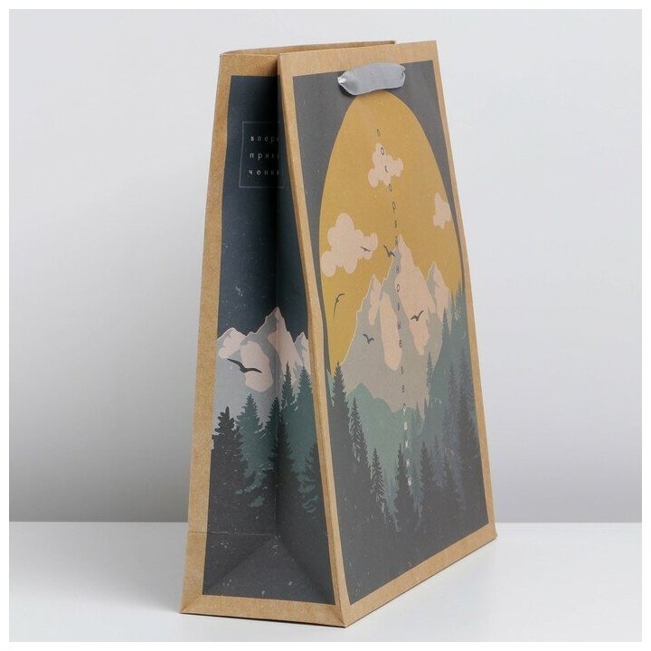 Пакет подарочный крафтовый вертикальный, упаковка, "Природа", M 26 x 30 x 9 см информация: