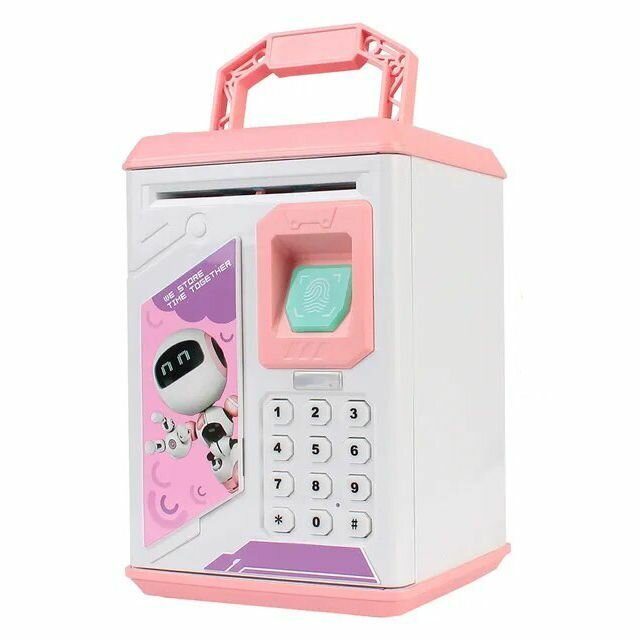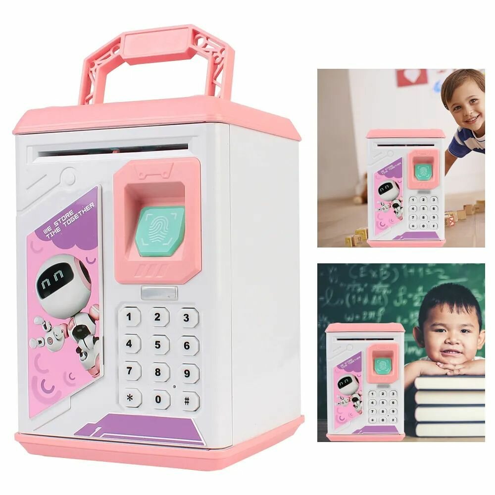 Копилка - Сейф с купюроприемником и отпечатком пальцев розовая информация: