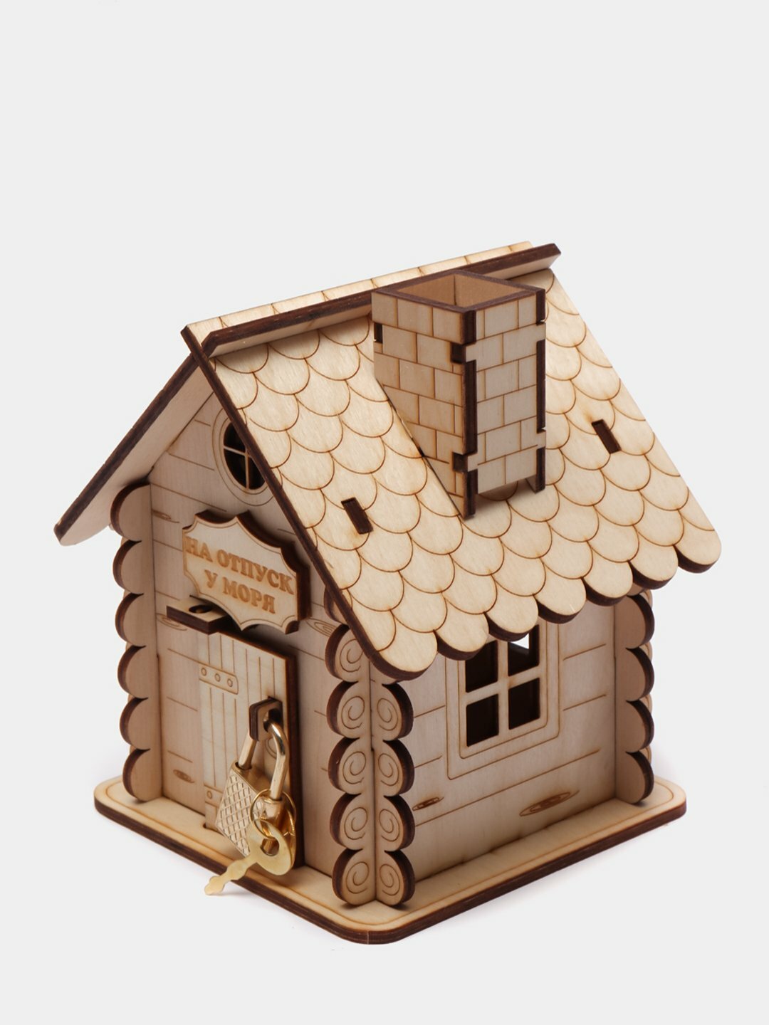 Копилка-домик из дерева с железным замком информация: