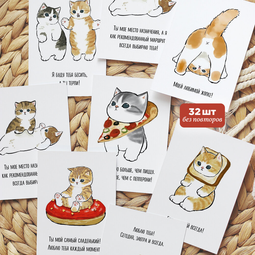 10 цен на Набор открытки котики мини записки любимому
