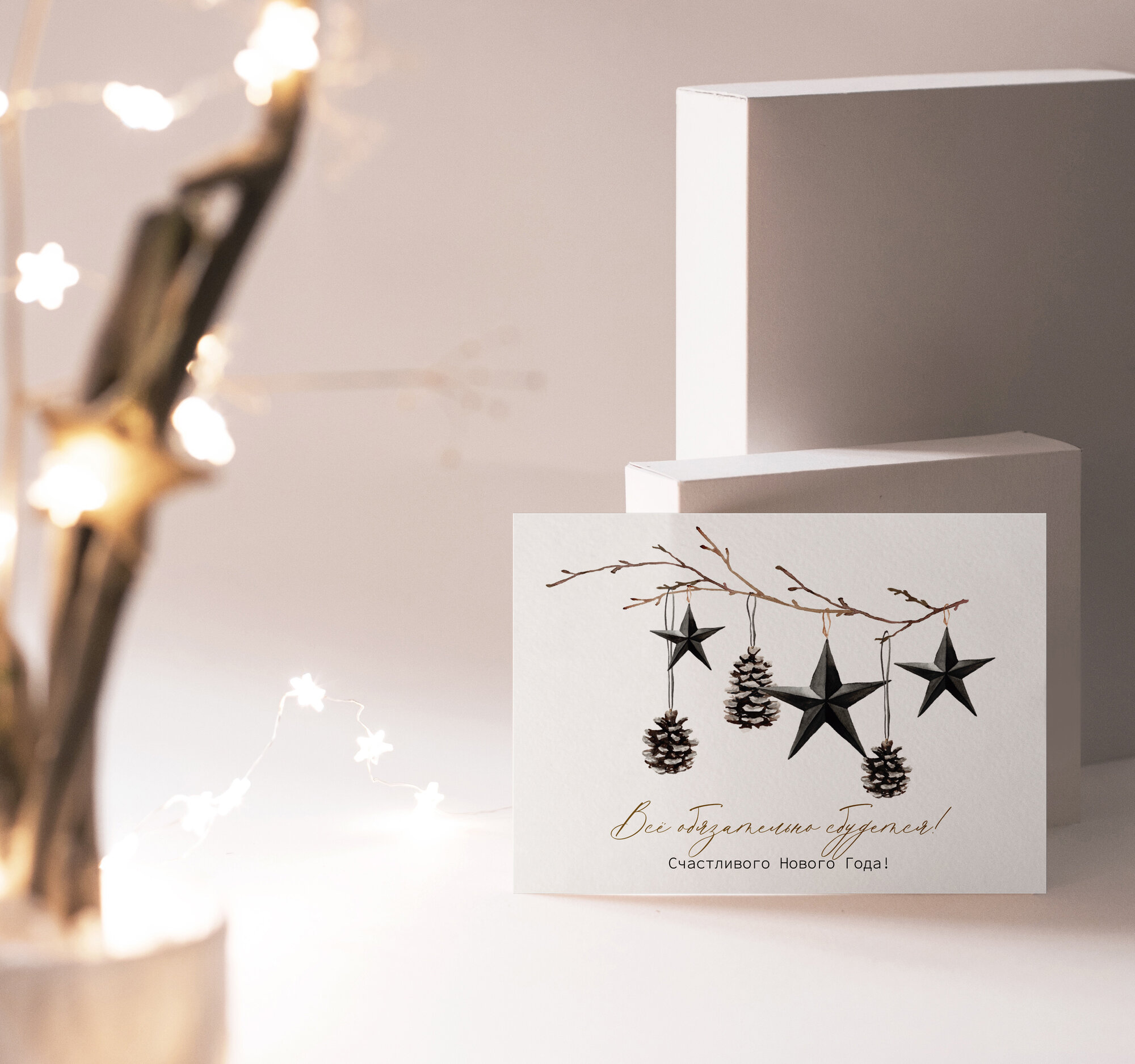 Набор новогодних акварельных мини открыток в "Сканди стиле". 5 шт.