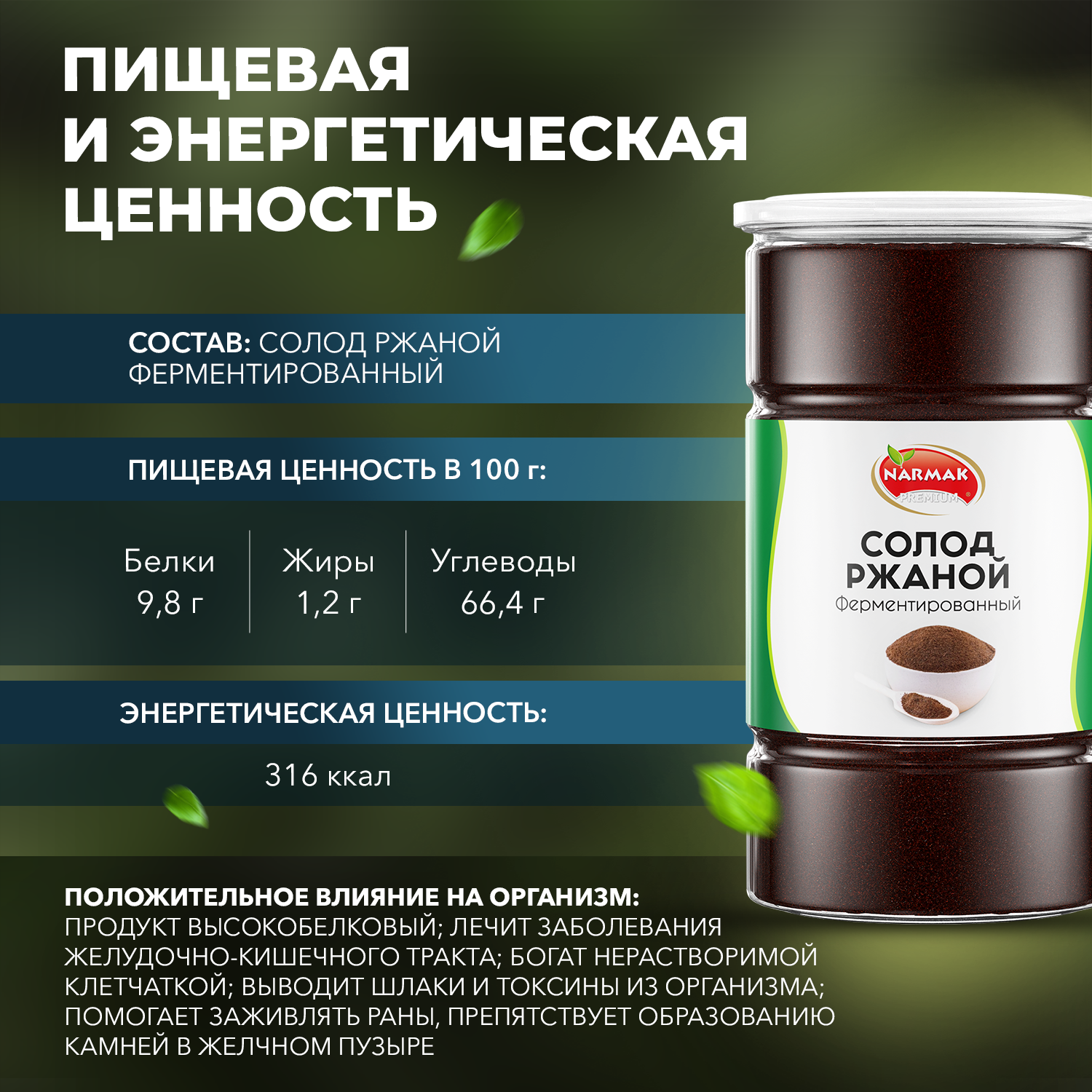 Солод ржаной ферментированный, для выпечки хлеба, самогона, кваса, пивоварения, 1000гр/ Narmak информация: