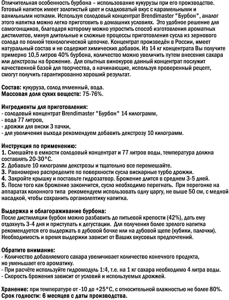 Солодовый концентрат Brendimaster "Бурбон", 14 кг информация: