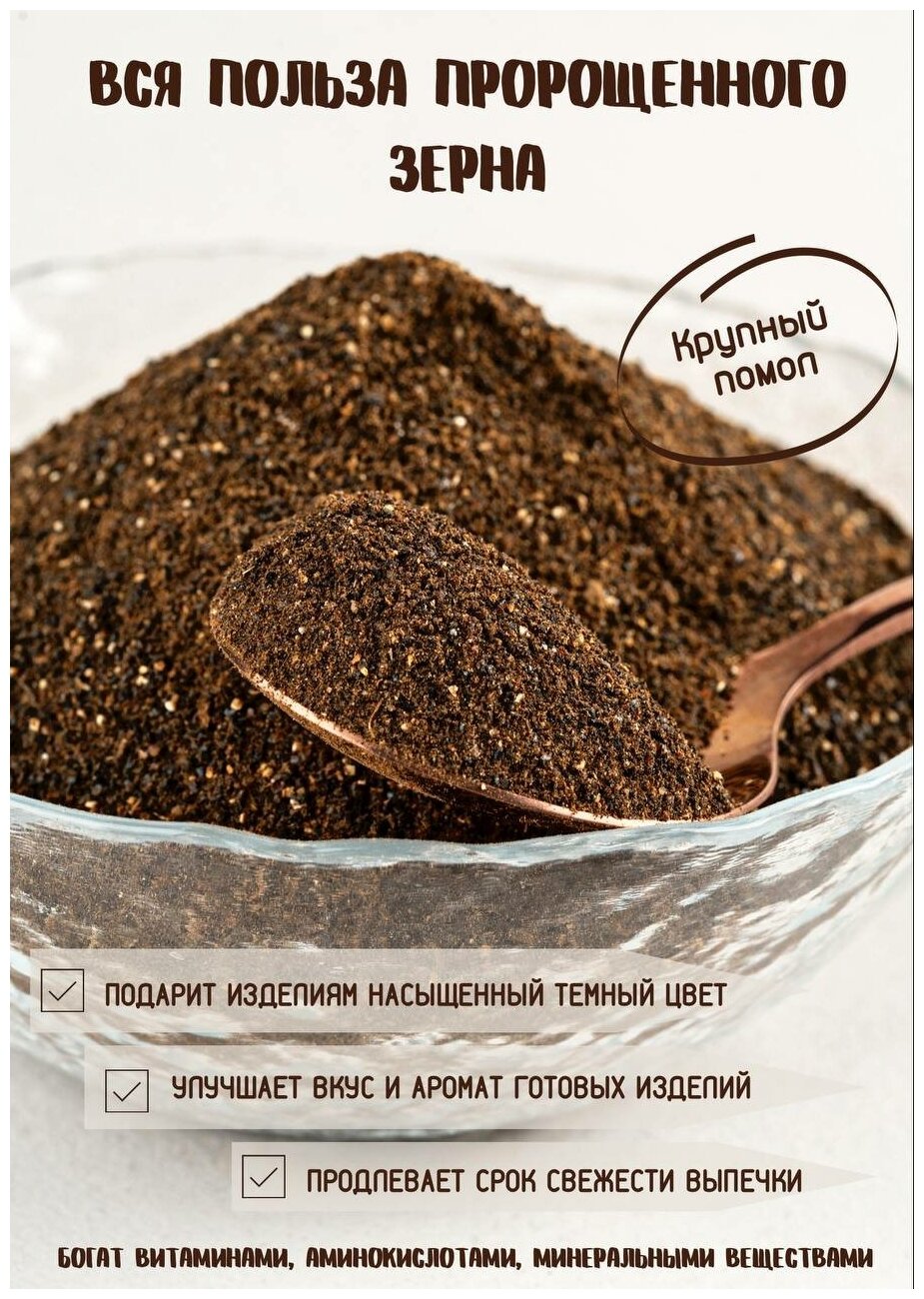 Солод ржаной (красный) ферментированный молотый для хлеба, кваса, пива, браги, виски, настоек, самогона 1кг информация: