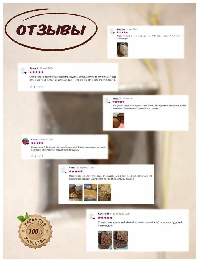 Отзывы на Солод ржаной (красный) ферментированный молотый для хлеба, кваса, пива, браги, виски, настоек, самогона 1кг