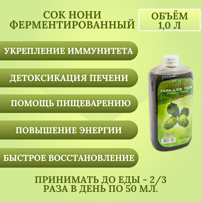 Натуральный 100% Сок Нони для повышения энергии ферментированный, Piyasatree 1000 мл. информация:
