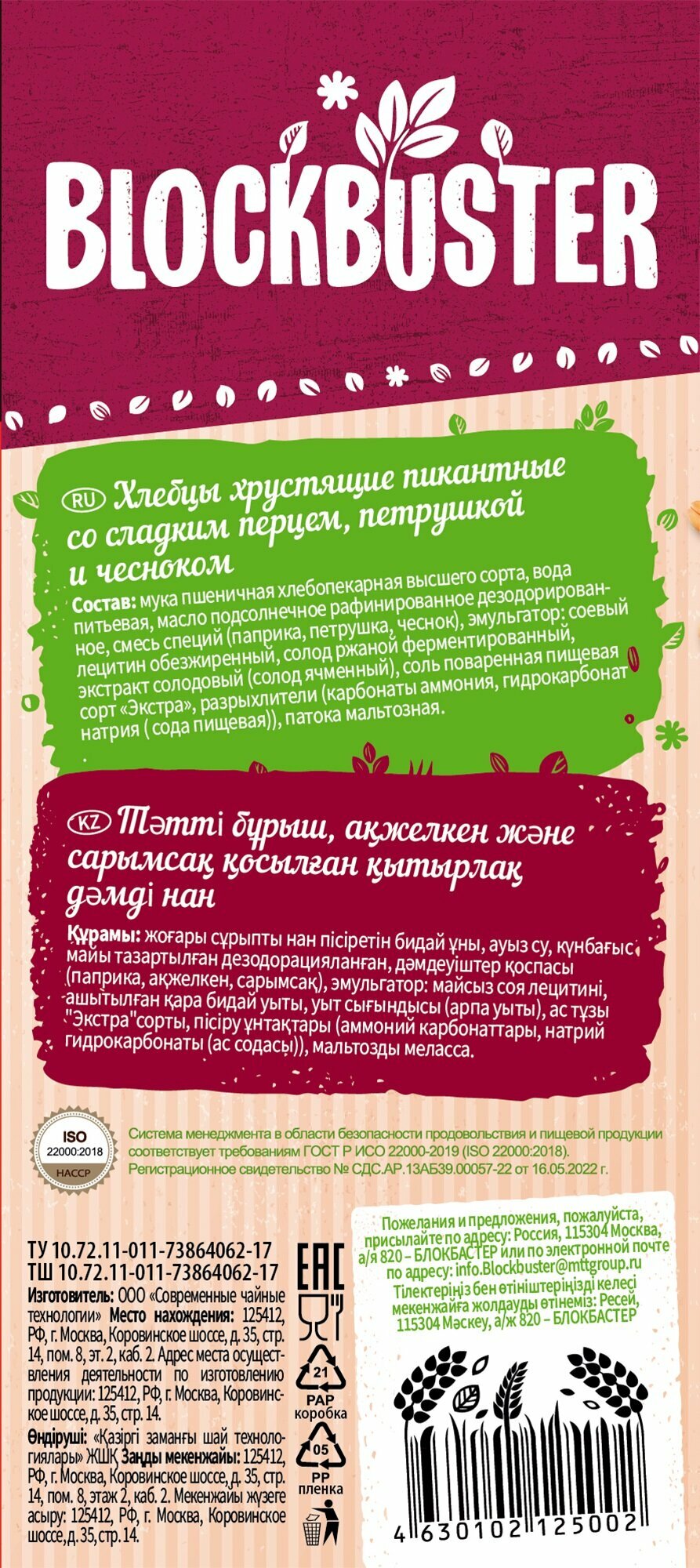 Отзывы на Хлебцы Blockbuster хрустящие пикантные со сладким перцем, петрушкой и чесноком 80 г, постные Блокбастер