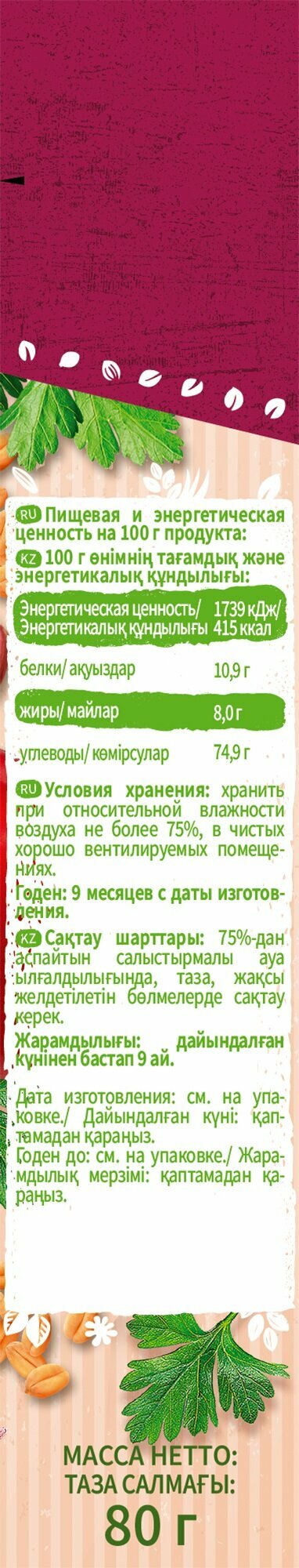 | Углеводы в 100 г | 74.9 г |