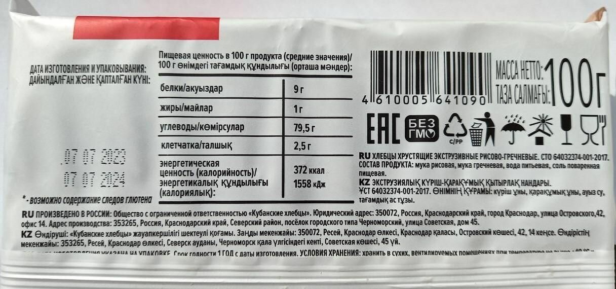 Характиристики этого товара не найдены!Отзывы на Хлебцы Кубанские хрустящие рисово-гречневые, в наборе 5 шт по 100 г