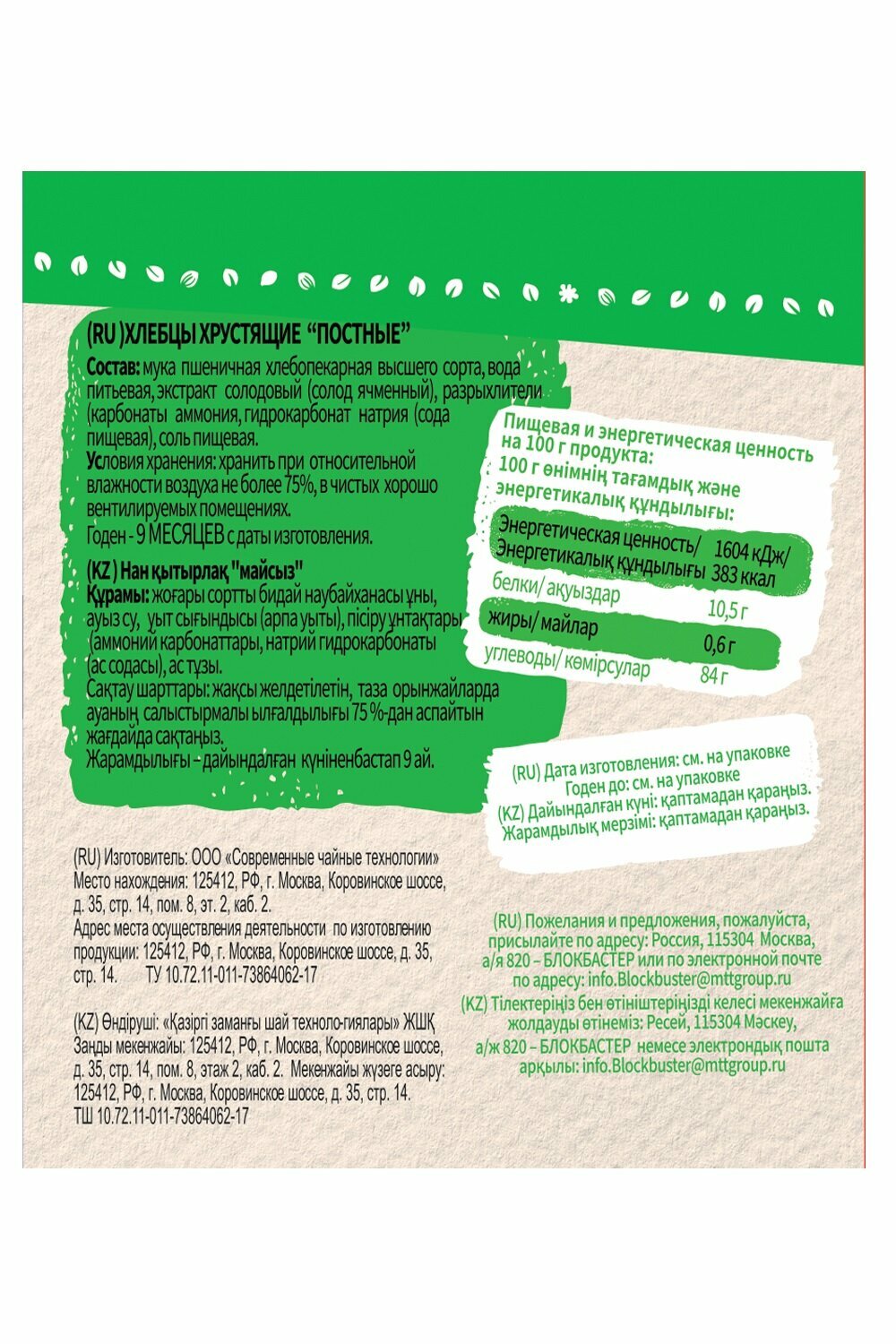 Хлебцы хрустящие постные Blockbuster 140 г, 2 уп по 70 г, без дрожжей, Блокбастер информация: