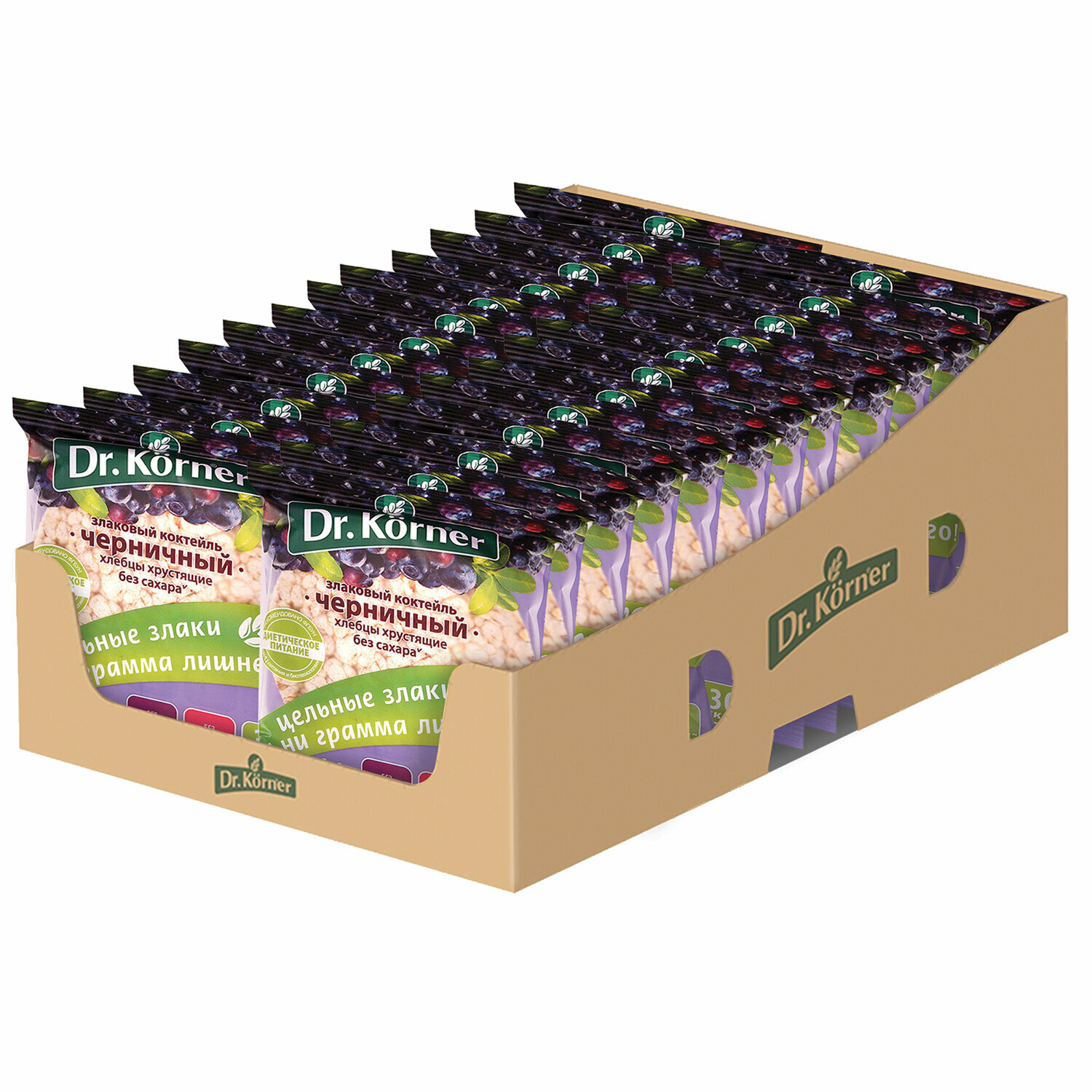 10 цен на Хлебцы DR.KORNER "Черничные" злаковый коктейль, хрустящие, 11 г, пакет, 601090084, 34шт. в компл