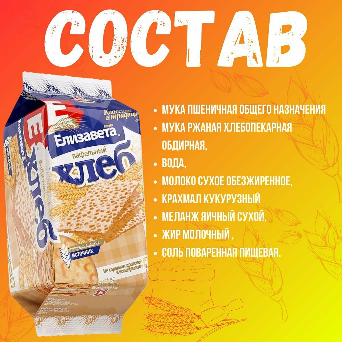 Хлебцы хрустящие "Вафельный хлеб "Елизавета" 80 гр. 20 шт. информация: