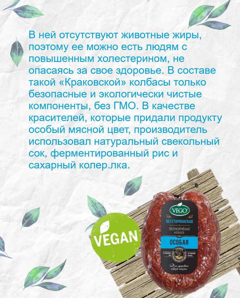 10 цен на Колбаса постная полукопченая "Краковская веганская" растительный продукт, 450 г VEGO