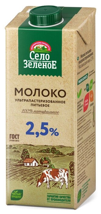Молоко У/паст 2,5% 0,95л СелоЗеленое информация: