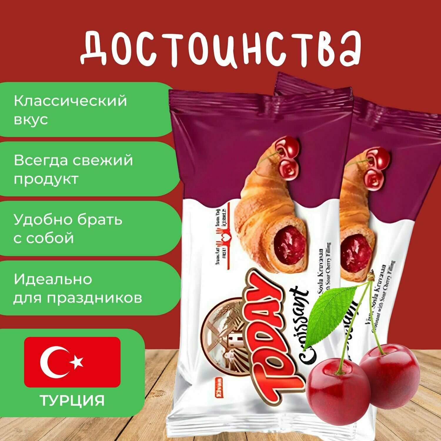 Отзывы на Today Круассан со вкусом Вишни 5 шт. х 40 гр. Круассан "Вишневый" в индивидуальной упаковке