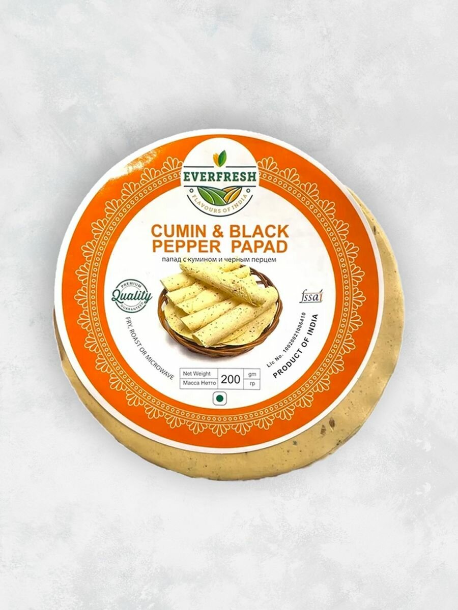 Папад с кумином и черным перцем (Cumin&Pepper Papad), 200 г информация: