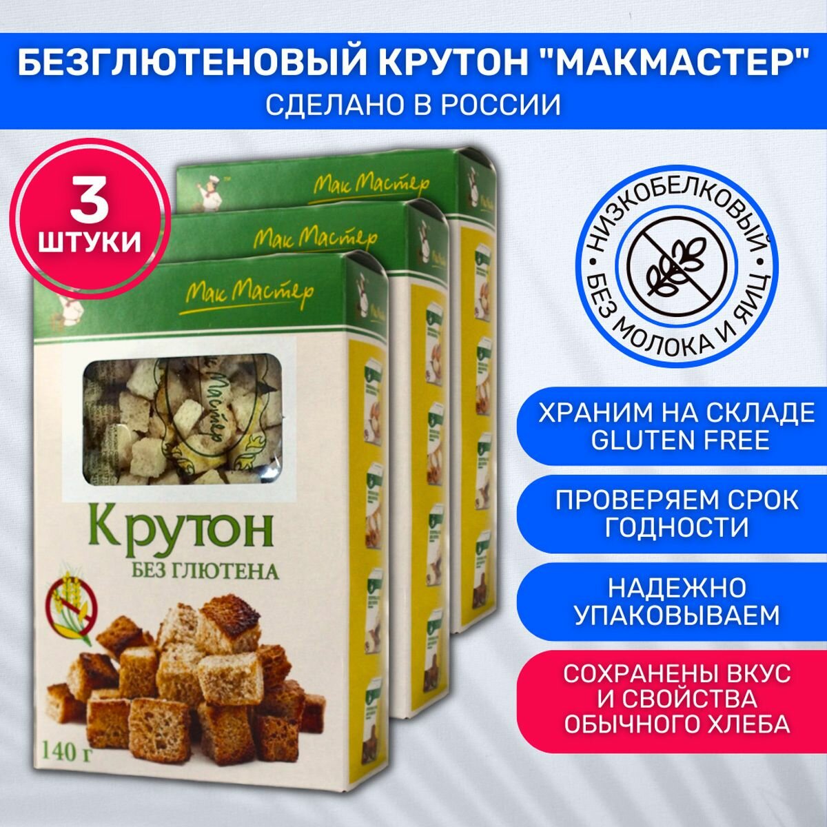Крутон без глютена МакМастер низкобелковый 3 шт по 140г информация: