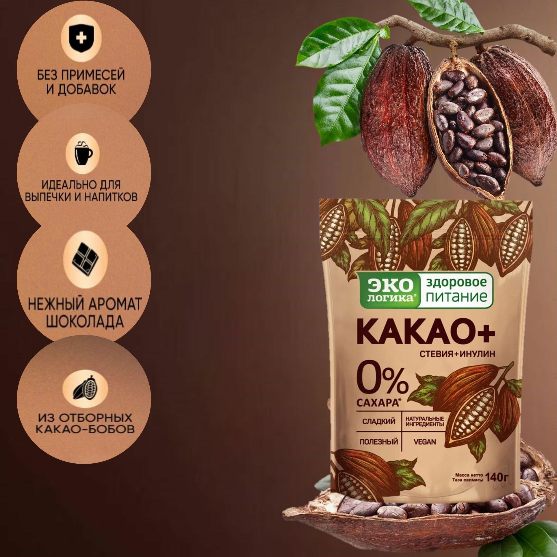 Какао Экологика Плюс 2шт*140 г без сахара/Московская кофейня на паяхъ/Россия информация: