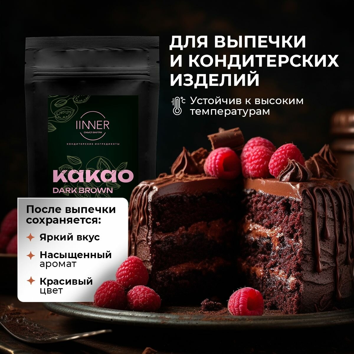 Какао-порошок Dark Brown IINNER натуральный алкализованный с пониженной жирностью, 100 г информация: